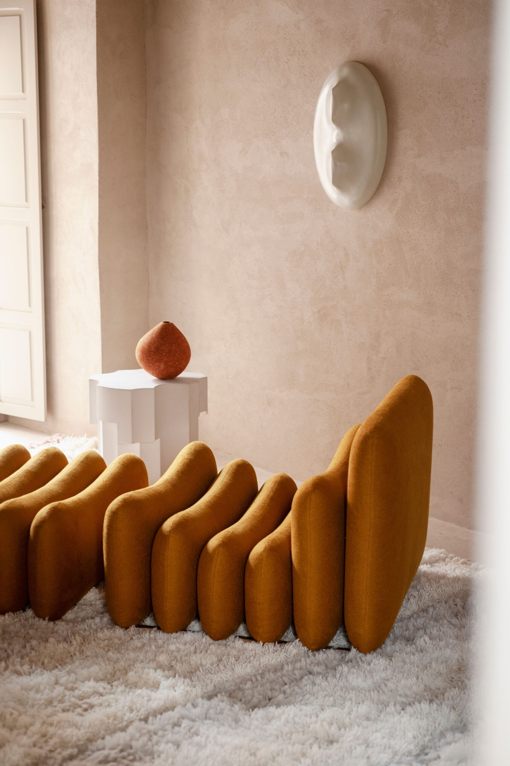 Designed by Master Joe Colombo, Additional System is offered by Tacchini in respect of the original “futuristic” spirit. The modules that compose it can be combined into dynamic and flexible seating that changes depending on the position and number of cushions used. In the armchair, the larger modules act as a backrest and gently support the seat, where cushions of various sizes also offer a small lift for the legs. The ottoman and daybed complete the system.