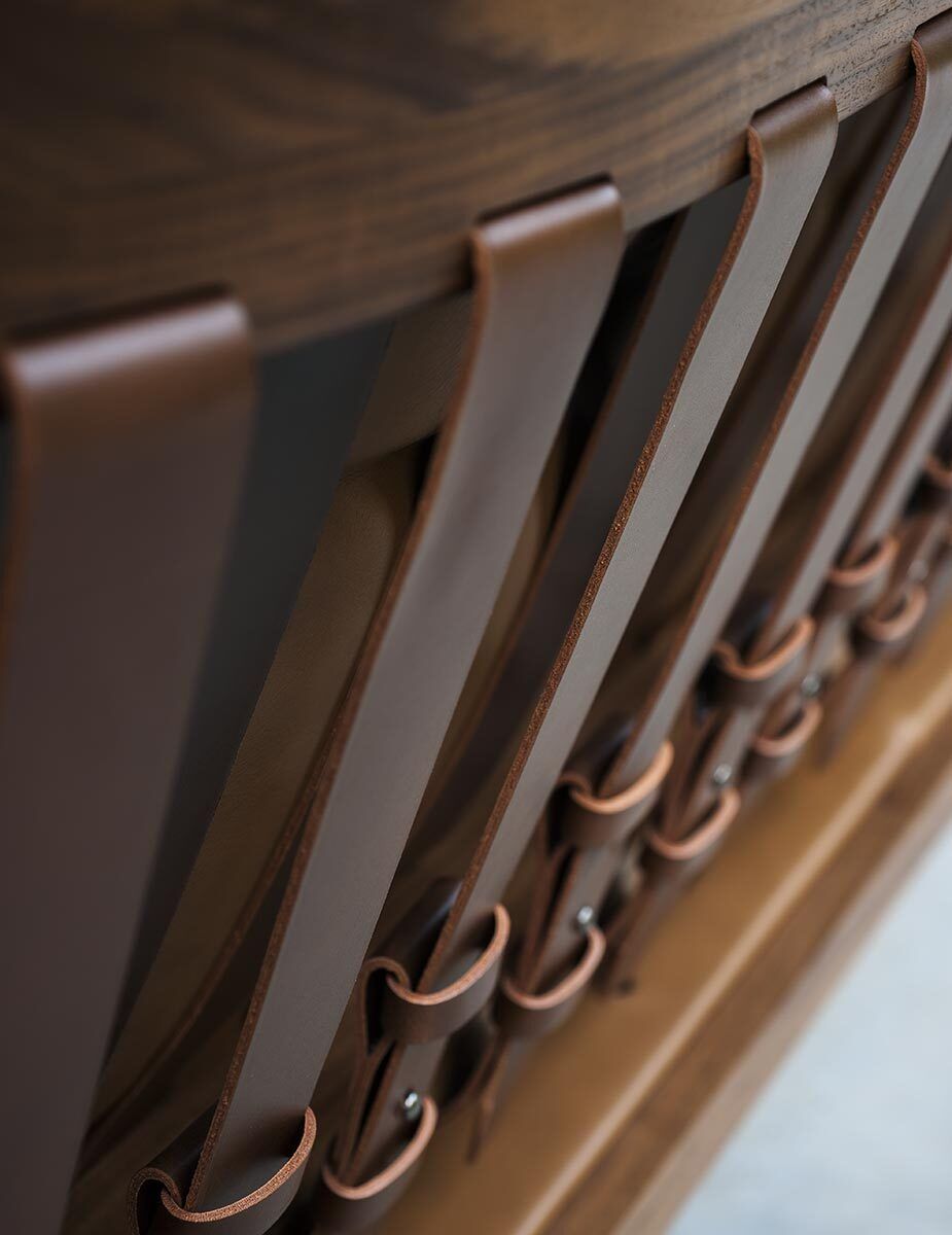 The sofa is inspired by the armchair designed by the famous Italian architect Carlo De Carli in 1966. A piece of great elegance, Sella invites you to rediscover a more intimate dimension, where comfort is attended to in every detail. The generous lines of the sofa are emphasised by soft feather cushions and artisanal upholstery in leather, fabric, or velvet, while the visible walnut wood frame is enhanced by chromed metal details and leather straps that support the backrest.